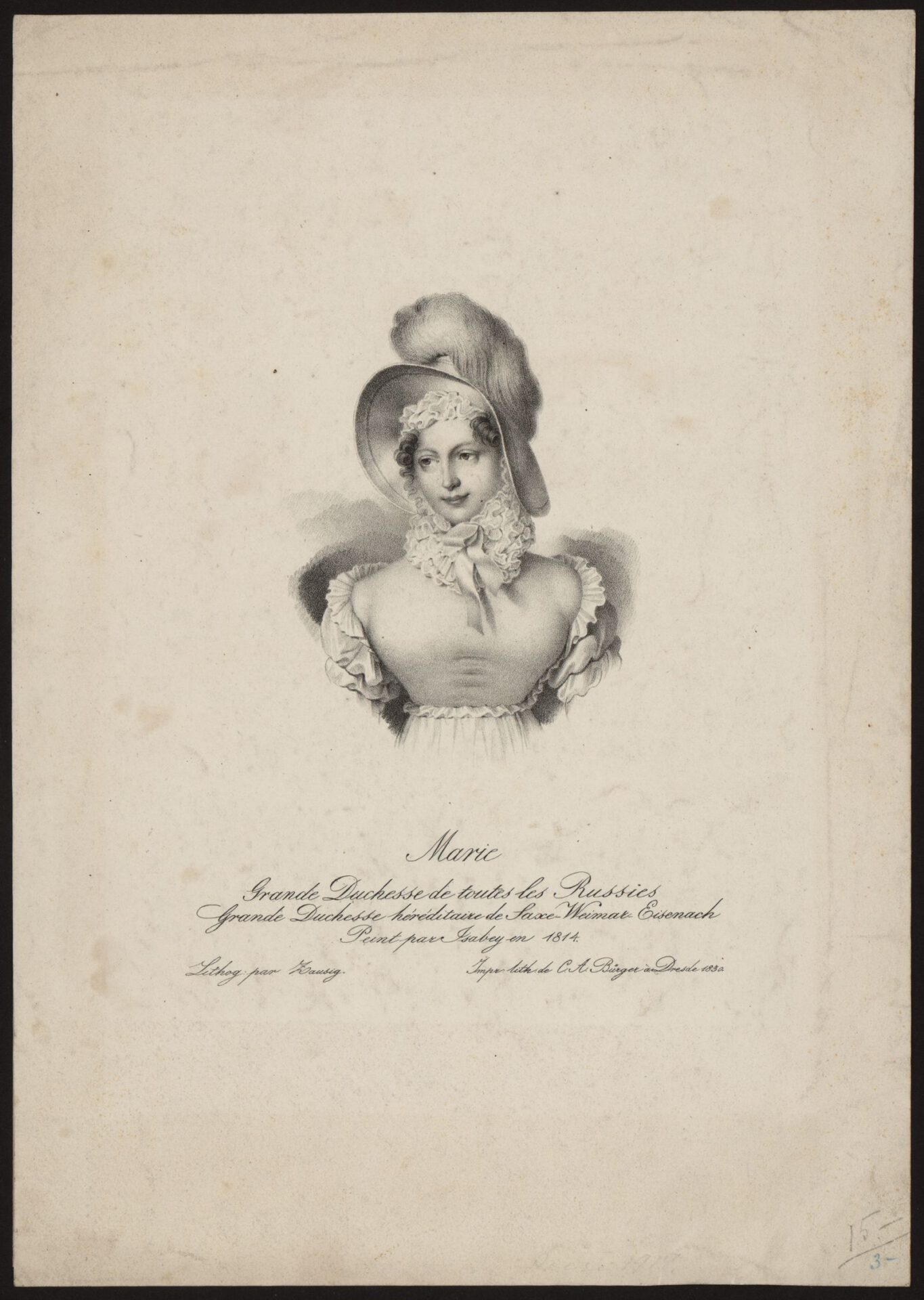 grande duchesse héréditaire de Saxe-Weimar-Eisenach, nach einem Gemälde von Isabey, 1814, gestochen von Zausig (Russische Staatsbibliothek, gemeinfrei)