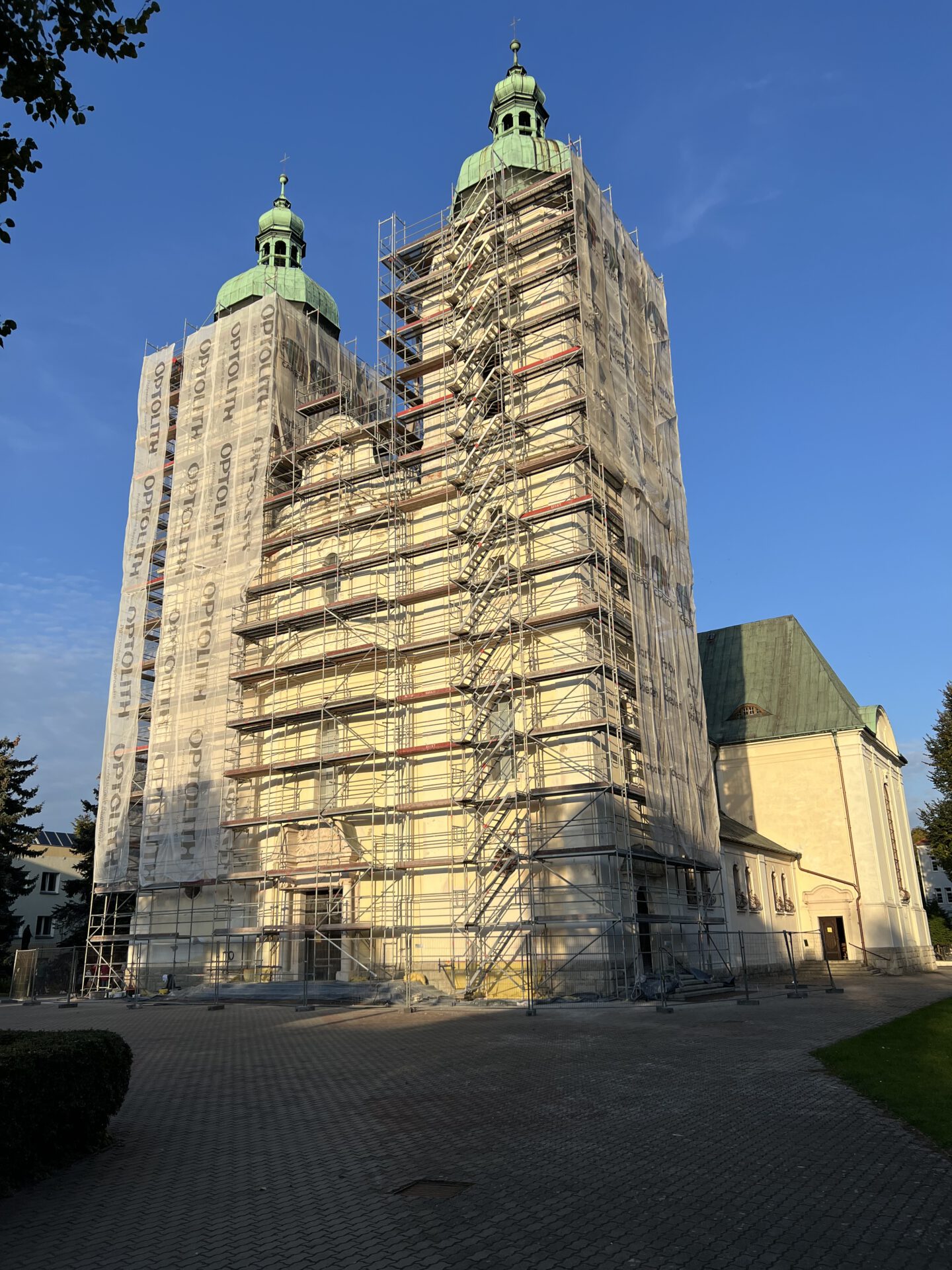 Die heutige Kirche wurde 1912-14 im neobarocken Stil in Form eines Kreuzes erbaut. 1945 wurde sie zerstört. Nach dem Wiederaufbau wird sie als katholische Pfarrkirche genutzt.