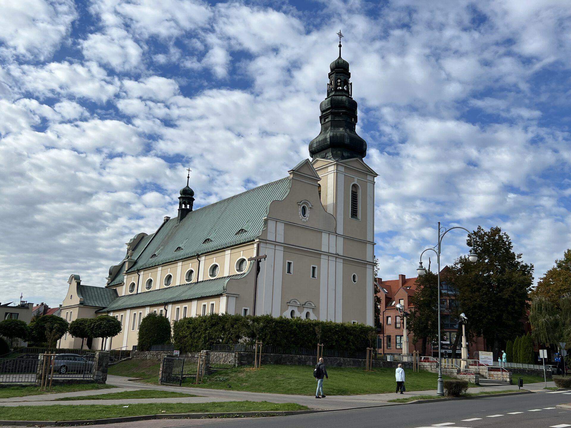Die dreischiffige Kirche mit einem asymmetrisch angeordneten Turm wurde Anfang des 20. Jahrhunderts im neobarocken Stil erbaut. Im Innenraum der Kirche sind der Hauptaltar sowie zwei Seitenaltäre im Barock- und Rokoko-Stil aus dem 18. Jahrhundert, die aus einem Kloster in Gołańcza stammen, zu besichtigen.